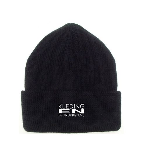 Warme gebreide muts inclusief een borduring van 10 x 5cm. Extra comfortabel en een goede pasvorm, mooie kwaliteit 50% wol / 50% acryl.