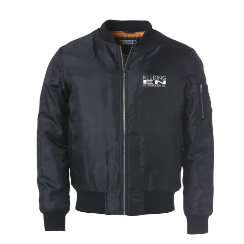 Bomber Jack unisex incl. opdruk met uw logo of tekst in 1 kleur op de linkerborst, prijzen voor het bedrukken in meerdere kleuren zijn op aanvraag te verkrijgen.